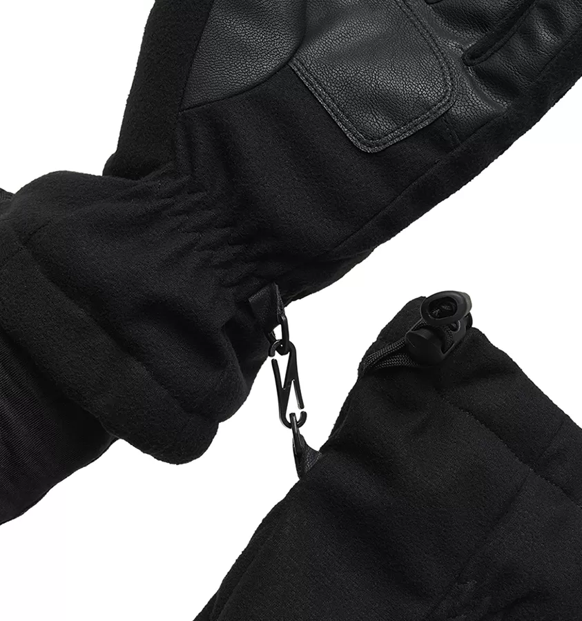 Перчатки имеют удобную манжету с резинкой в области запястья для комфортной посадки. Дополнительно регулируются по объему по низу манжеты. Есть пластиковый крючок для скрепления перчаток между собой.