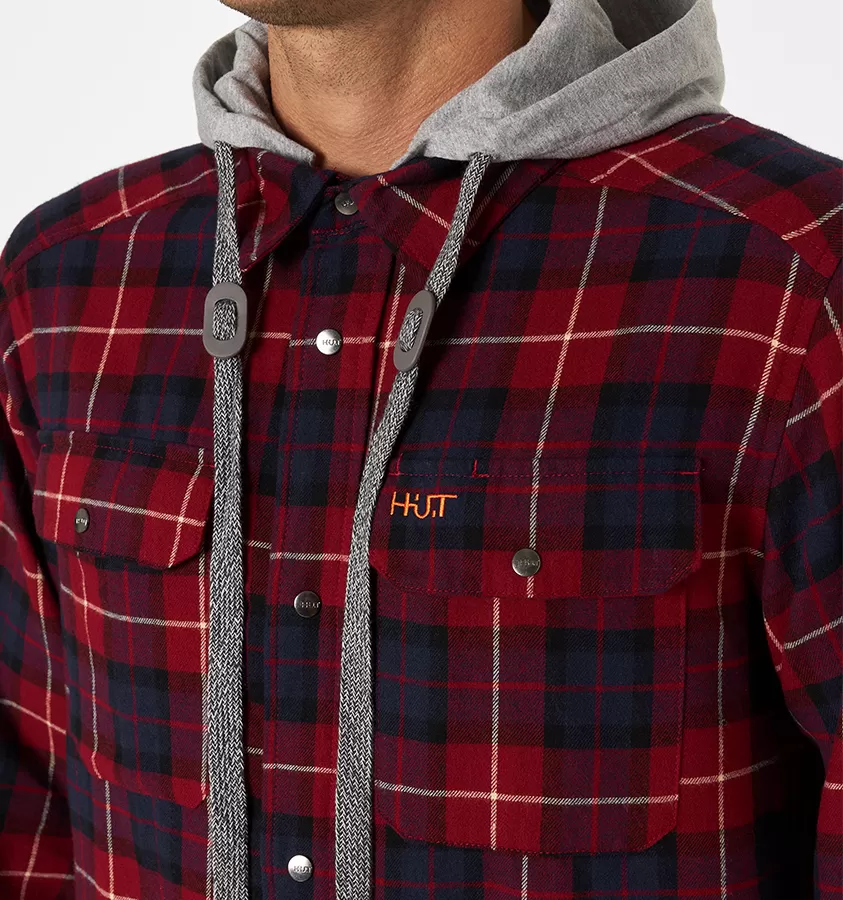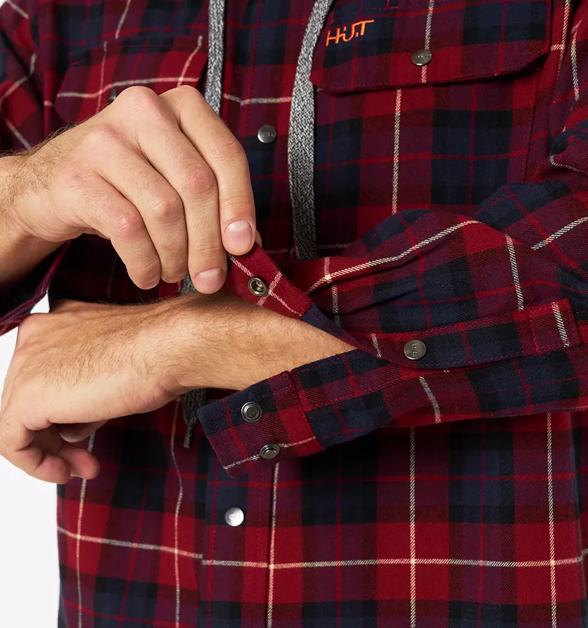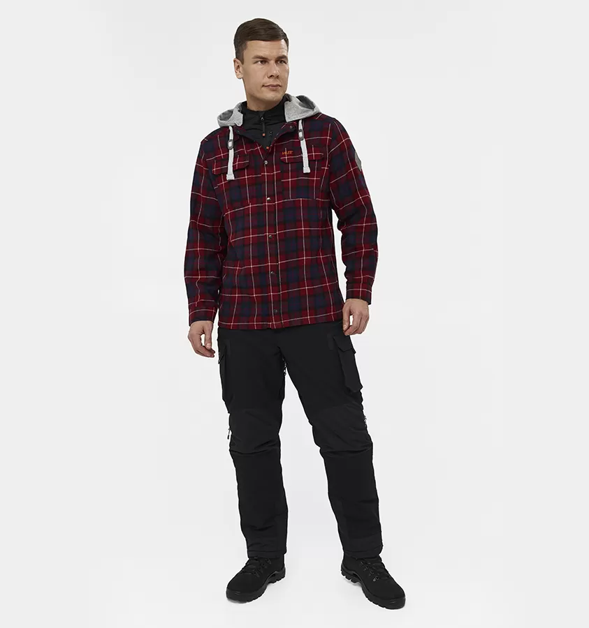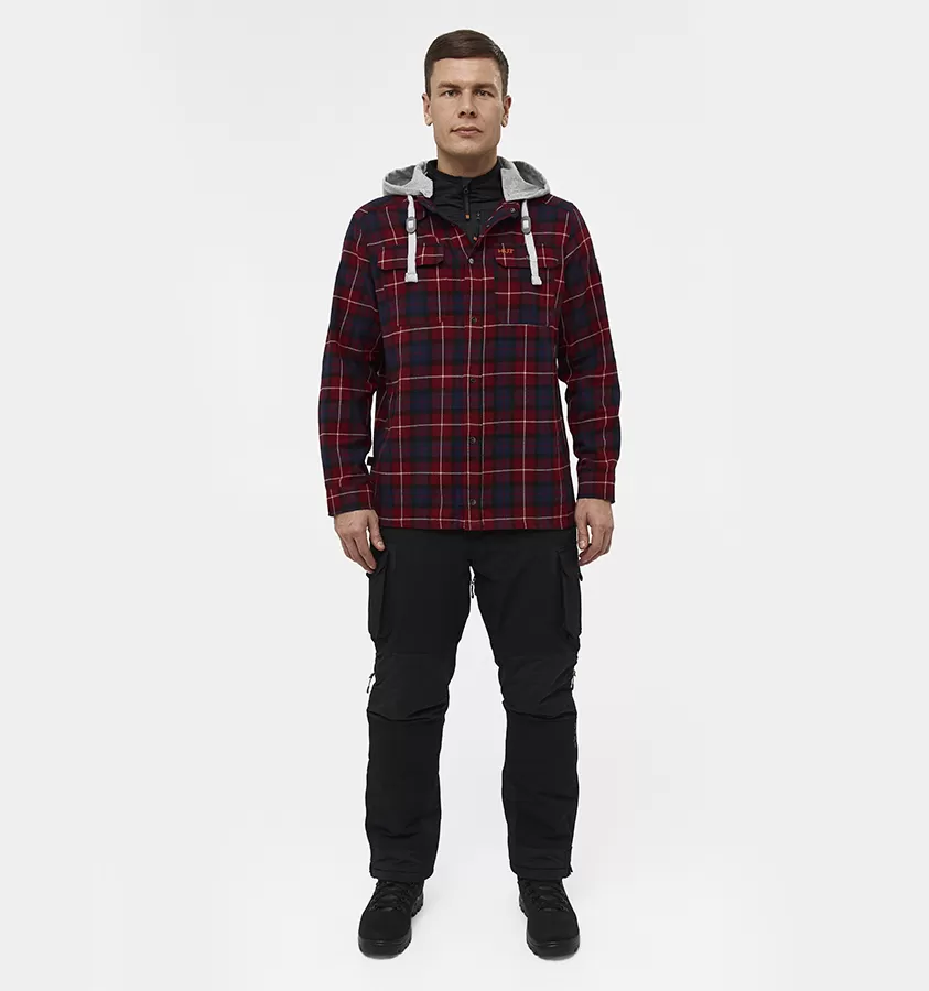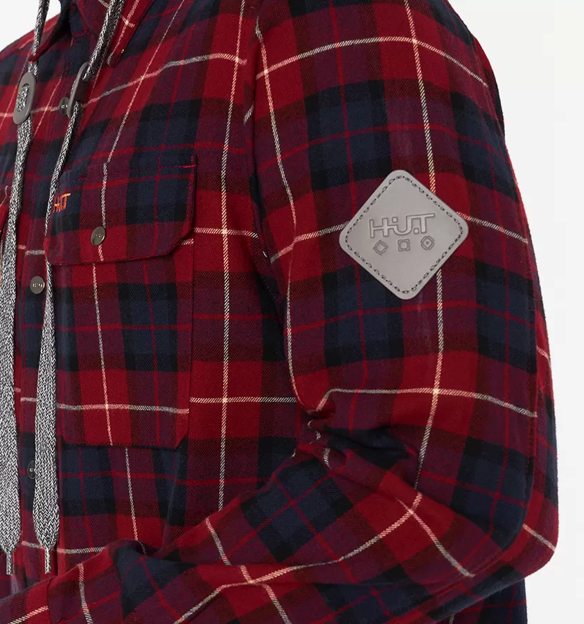 Рубашка мужская H.U.T. Samatja, с капюшоном, фланелевая, бордовая