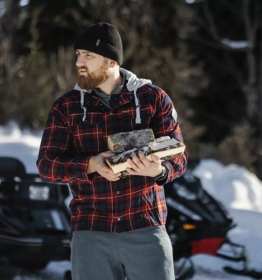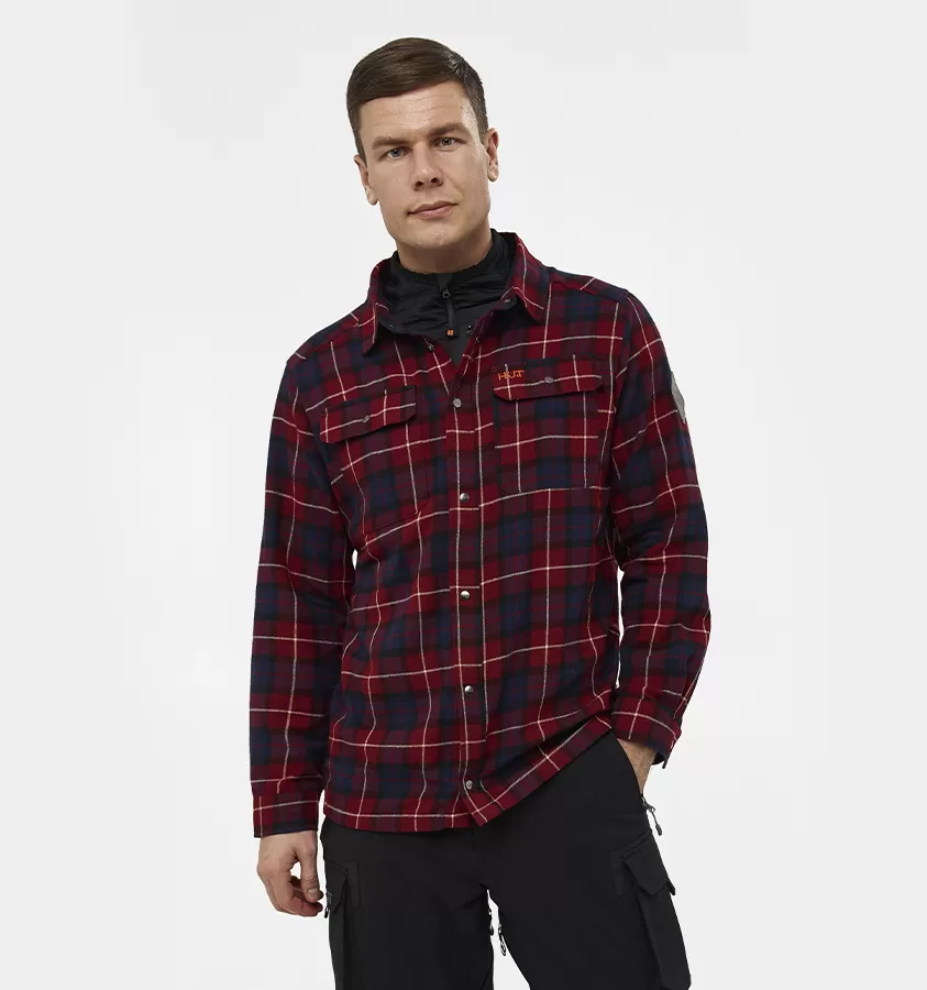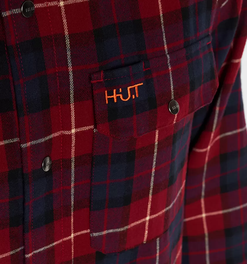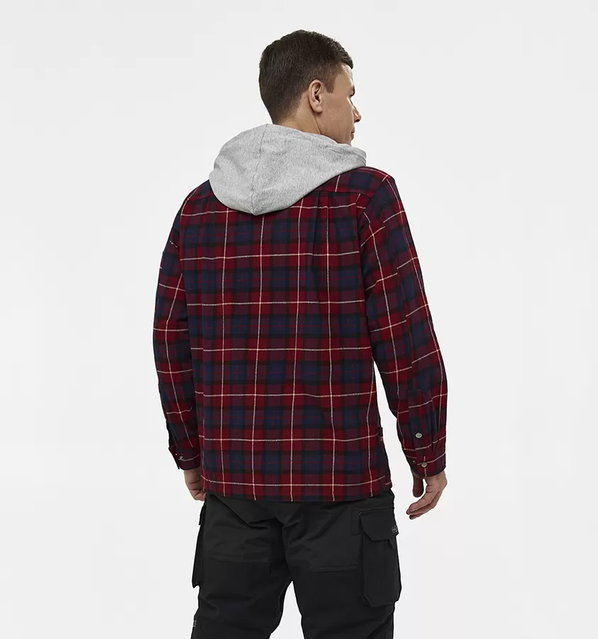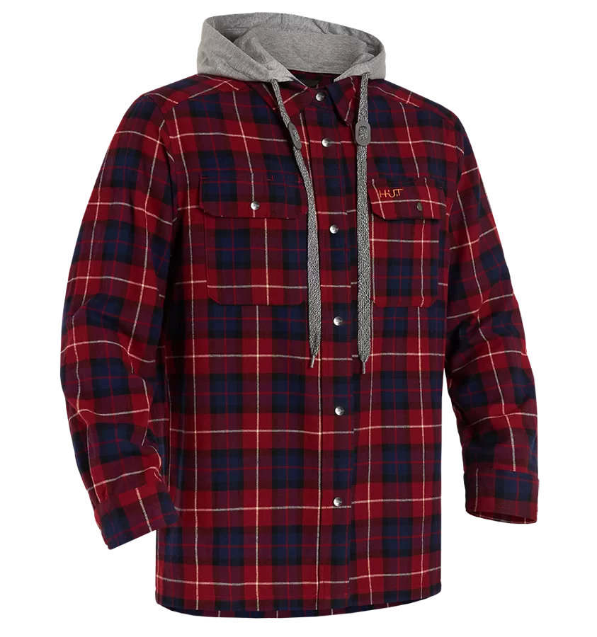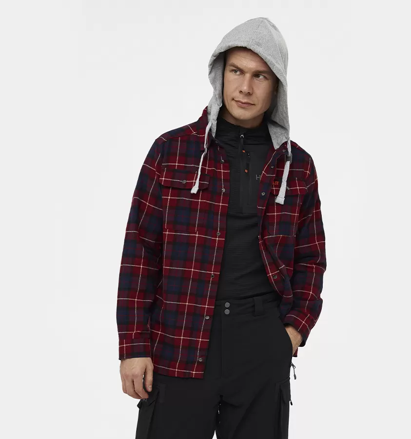 Рубашка мужская H.U.T. Samatja, с капюшоном, фланелевая, бордовая