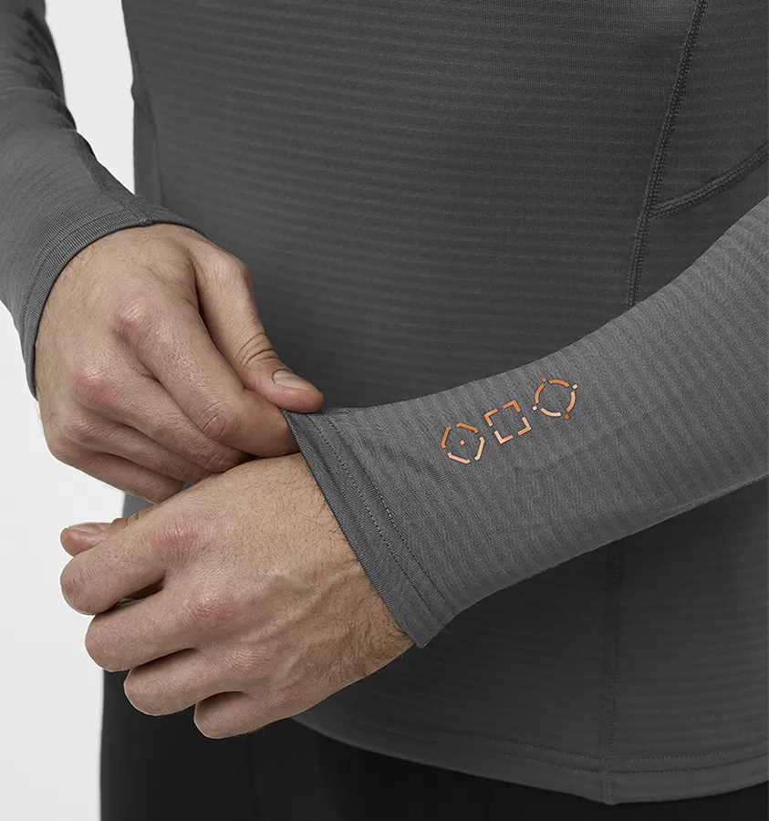 Лонгслив предназначен в качестве базового — влагоотводящего слоя, но также может быть использован в качестве среднего слоя. Обеспечивает эффективную терморегуляцию и комфорт.
